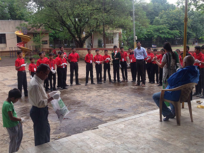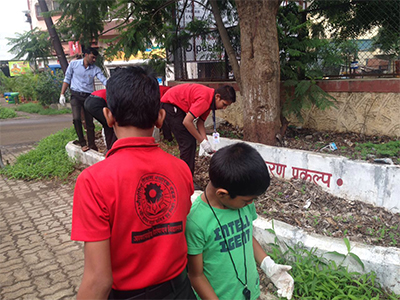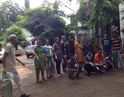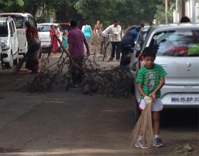 Thirtysix ninth class students from Vaishampayan School joined the "Parisar Swacchata Abhiyaan " around the Ganesh Mandir in Mahatmanagar this morning (23 rd July).All lanes were absolutely cleaned in a jiffy! Best way to learn is to do!