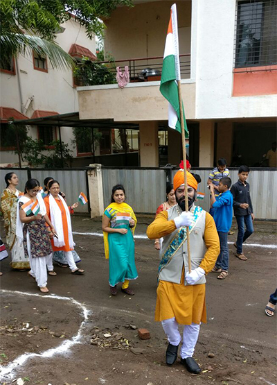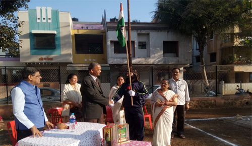 Republic Day Flag hoisting at the hands of Group Captain(retd) Shri Vinayak Deodhar at Kamatwada by Sujan Nagarik Manch,Nashik!