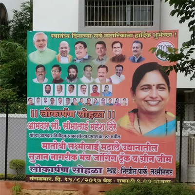 Our MLA Mrs Simatai Hiray and Shri Mahesh Hiray ha always been supportive of this project since inception.They have been encouraging us by their presence in our functions.A concrete help has been given by them by installing"Green Gym"near the jogging track!And finally they gave us a big moral boost by awarding SNM the "Khandesh Ratna"award!We are forever thankful for all this!