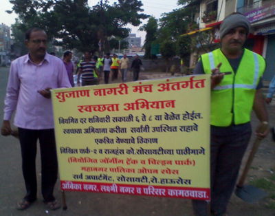 8th October - Swacchata Abhiyaan was at Durga Mata Mandir, Navshya Maruti Mandir and Datta Mandir near Trimurti Chauk in Cidco! Sujan Nagrik manch,Om Bajrang group and Sant Gadge Mahaj group jointly organized a Swacchata Abhiyaan!