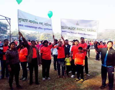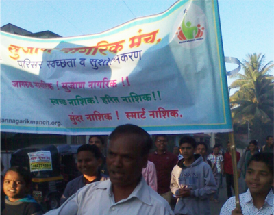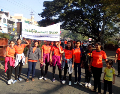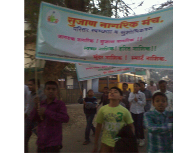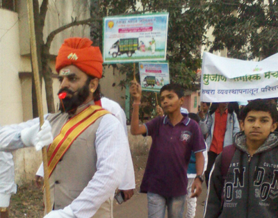 "Swacchata Dindi" by Vaishampayan school children at Mahatmanagar.