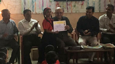 On behalf of Sujan Nagarik Manch, Shri Bam presented a Cheque for Rs 25000/- to the office bearers of " Sujaan Shetkari Bachat Gat",Dundhe gain, taluka Malegaon! This is to kickstart the activities like tree plantation and promote the farmer welfare activities in the village! This self help group has been formed due to the vigorous efforts of our member Shri Madhukar Bagul! Our best wishes!