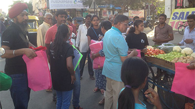 GREEN SHOP Concept !!! We identified 20 shops of Indira nagar area,Gave each shop 50 Cloth bags Free &